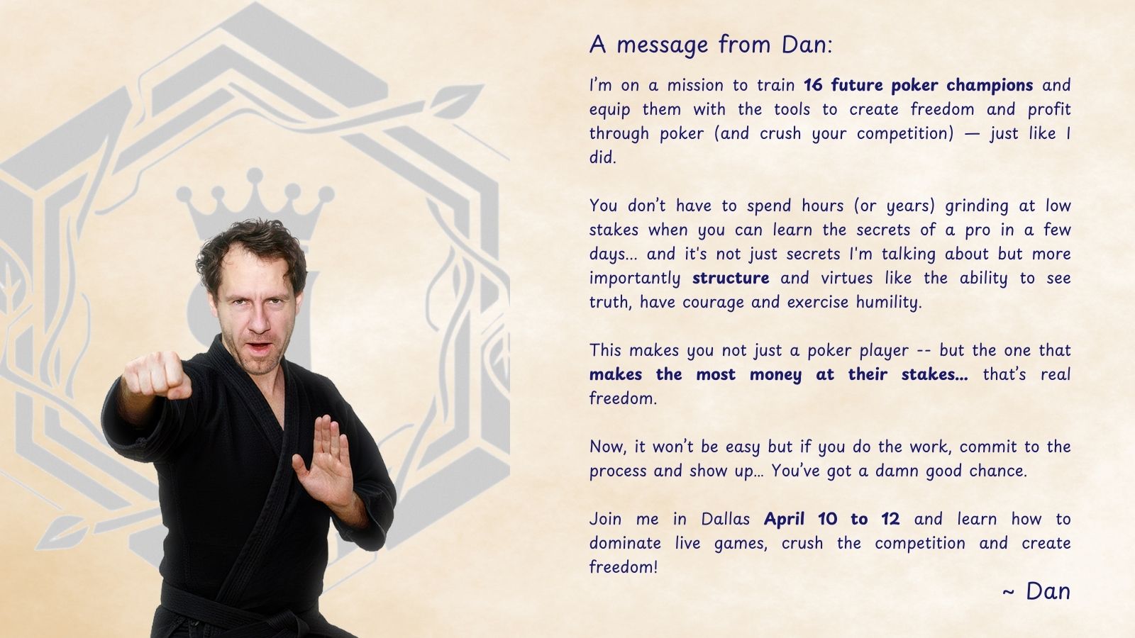 You’ll be learning from one of the most accomplished and respected players in poker history a man who’s crushed every level of the game for over a decade.